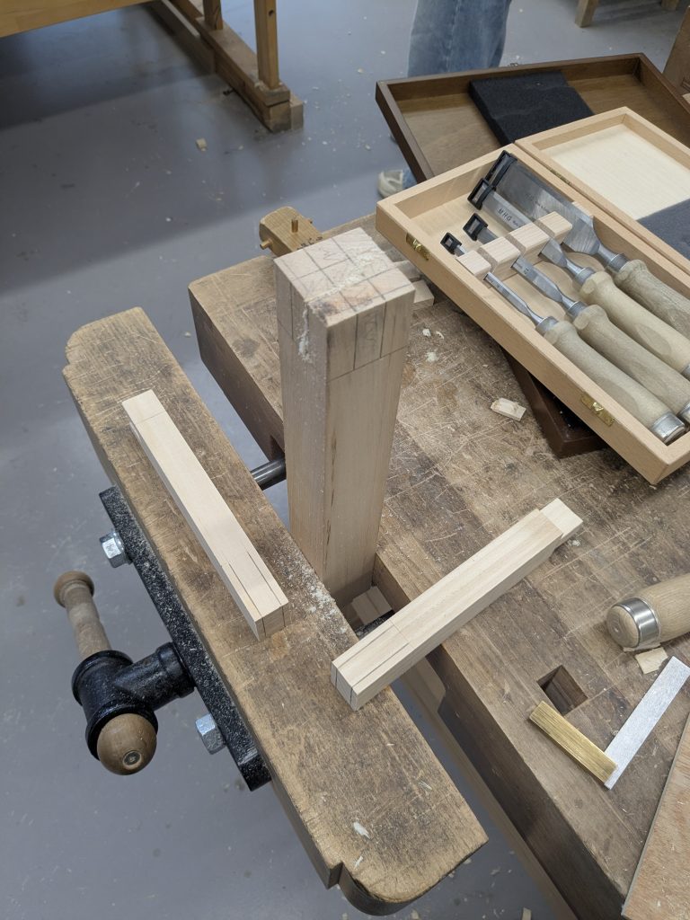 In today’s course after making a mortise and tenon joint, the assignment was to make a dovetail joint. I’ve made dovetails before, and while they’re always good practice, I felt the urge to push myself a little further.